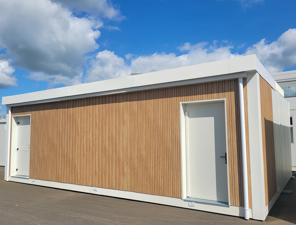 Parois extérieures en bardage alvéolaire coloris bois en PVC recyclé