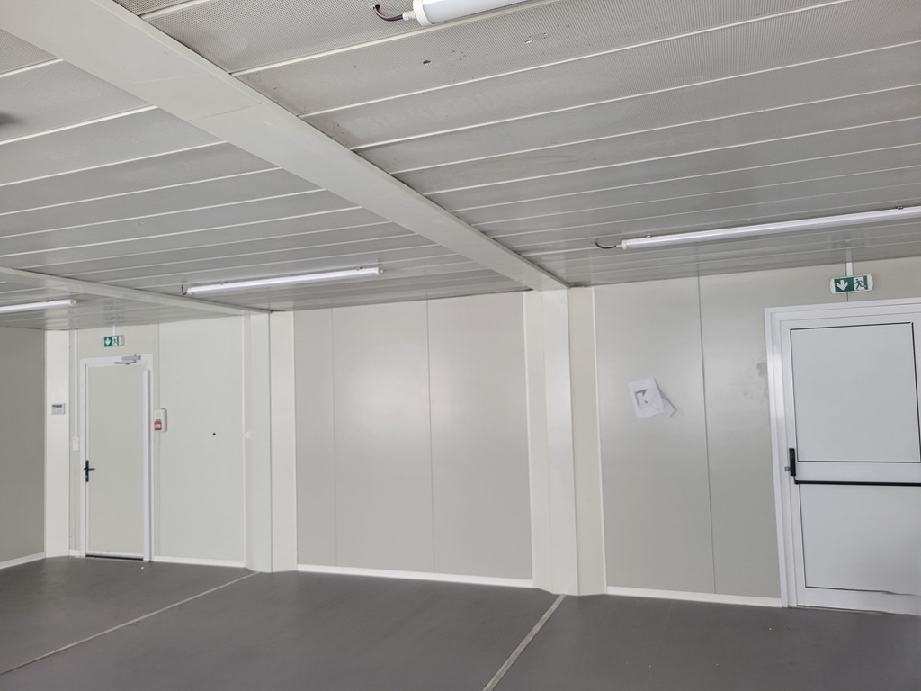 Face intérieure : tôle galvanisée lisse blanc gris, doublage par panneau sandwich de 80mm en mousse polyuréthane